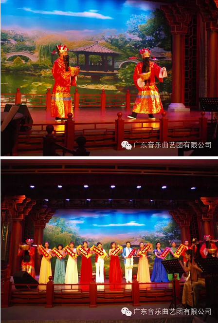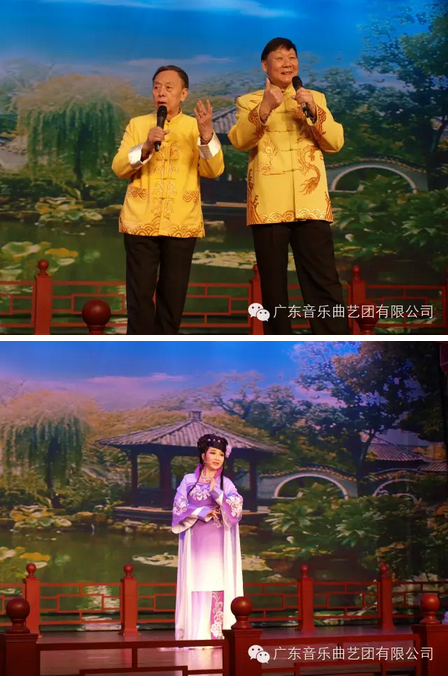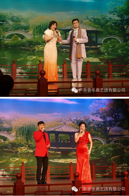 当晚,开场接连三首喜气洋溢的《锦帆开》、《恭喜你》、《欢乐年年》,引得“财神”驾到“派福”观众席间,曲艺新年盛会就此热闹开演。此次演出群星荟萃、阵容强大,节目内容丰富、形式多样,晚会亮点颇多,高潮迭起:“羊城笑星”、“粤语相声泰斗”黄俊英搭档著名粤语相声表演艺术家何宝文,妙语连珠演绎相声《成语泰斗》,引得台下观众捧腹大笑;著名粤曲平喉“星腔”演唱家梁玉嵘不仅扬琴弹唱一曲《寒夜琴挑》,更与粤曲平喉演唱家何萍对唱经典粤曲选段《十八相送》,令在座曲迷如痴如醉、直呼过瘾;广东著名演员、广州相声艺术团团长陈坚雄不仅担当此次晚会主持,更与其他青年演员带来欢快诙谐的三句半《广府赞》,嬉笑说唱间歌颂广府新气象。此外,还有粤曲对唱《花好月圆》、子喉独唱《昭君塞外吟》、咸水歌《情醉五层楼》。本台晚会不仅汇集了我团众多曲艺名家,更有我团大批优秀青年演员齐齐登台亮相。晚会最后,由我团新生力量绝妙演绎的2015年终力作《新唱“紫钗记”》精彩压轴,将浓缩地曲艺精华发挥淋漓尽致。当晚演出所有门票早已抢购一空,临时加座也将台下挤得满满当当,台上台下欢声笑语、和乐融融,观众席间喝彩点赞、掌声阵阵,一派祥和喜庆新年气象。
