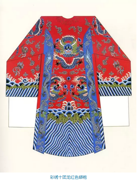 这是戏曲舞台上扮演帝王、官员等角色使用量最多的一种蟒袍,扮演文臣武将的老生、小生、武生都可使用。蟒袍大体分为红、明黄、杏黄、白、蓝、绿、紫、粉红、淡湖、浅米、古铜、豆沙、香色等。明黄与杏黄是扮演皇帝、番王、王子以及齐天大圣(孙悟空)的蟒袍专用色,其它角色不得使用。
