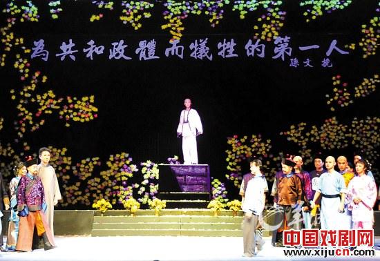 为纪念辛亥革命100周年,大型新编粤剧《血沃共和花》于本月26日晚在中山市孙中山纪念堂公演,中山市委市政府有关负责人及粤剧前辈罗家宝、陈笑风、秦中英等观看了演出。该剧由中山市委宣传部、中山市文化广电新闻出版局主办,广东香山粤剧团有限公司承办并演出。