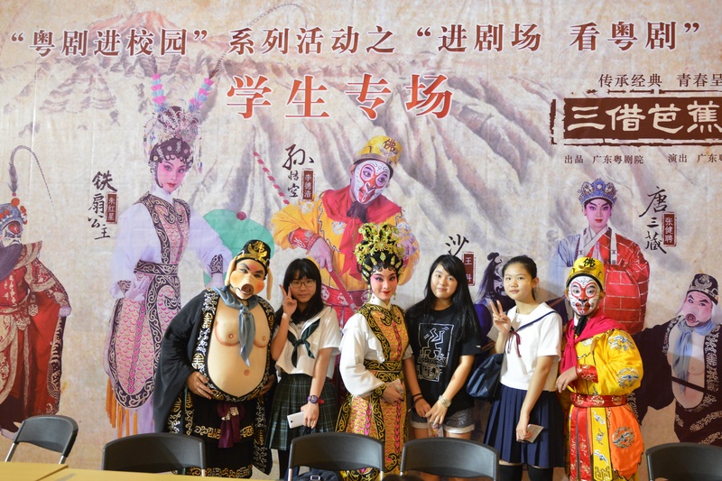 2016年4月23日下午,广东粤剧院“粤剧进校园”系列活动之“进剧场看粤剧”学生专场在广东粤剧艺术中心隆重举行,来自广东广雅中学、暨南大学华文学院的学生、老师和家长一起欣赏了由广东粤剧院二团献演、取材于《西游记》的大型神话粤剧《三借芭蕉扇》。