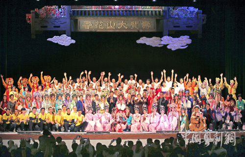 3月30日、31日,粤剧传统例戏《香花山大贺寿》分别在佛山琼花大剧院和广州中山纪念堂进行重排公演。该戏集合了广东众多粤剧团体的名家大腕,令冒雨来到中山纪念堂的2000多名观众大饱眼福。