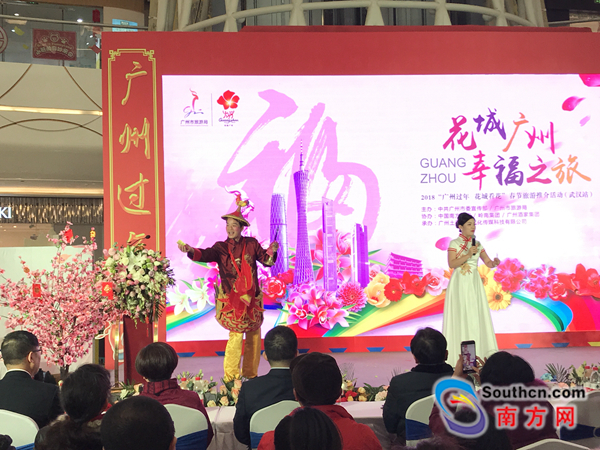 9日下午,在武汉汉街万达广场中庭,粤剧名伶、红线女入室弟子琼霞演唱的一首《荔枝颂》,唱词高雅,声韵悠远,赢得现场阵阵掌声。这是由广州市委宣传部、广州市旅游局主办的2018“广州过年·花城看花”春节旅游推介会现场。广州市旅游局、武汉市旅发委、相关旅游企业代表以及现场200多名观众共同参加了此次推介会。不少武汉民众不仅能在现场听到粤曲,还品尝到了鸡仔饼、鸡公榄等广州地道小吃。