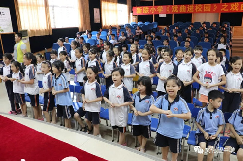 一直以来,东莞市望牛墩镇十分重视粤剧曲艺文化在中小学生中的传承,积极深入开展传统戏曲培训系列活动,把传统戏曲送进校园,氛围浓厚。目前,新联小学开办了“粤剧曲艺班”,全面推广和普及戏曲知识,让青少年了解优秀戏曲文化,感受传统文化的韵味和魅力,传承戏曲文化精髓。
