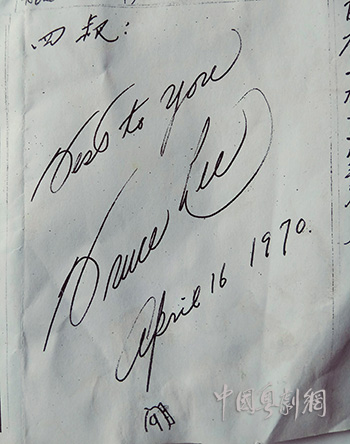 1970年,李小龙给邵汉生的题字