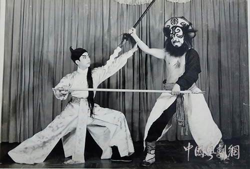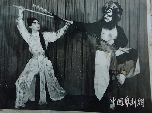 邵汉生与阮兆辉表演粤剧《三气周瑜》的剧照