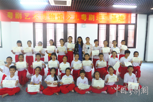 为响应“粤剧进校园”的号召,6月至8月期间,基地与战略伙伴广东戏剧舞蹈职业学院举办了2期粤剧特训班,聘请中国戏曲学院、广东舞蹈戏剧职业学院和广东粤剧院的优秀指导教师授课,组织采风观摩。基地共挑选了40余名学员,分别在粤剧艺术博物馆少儿粤剧传承基地和广东舞蹈戏剧职业学院设点特训。特训班设置了丰富的课程内容,包括表演艺术基本理论、粤剧及其它剧种剧目欣赏,设唱念课、腰腿课、毯子课、身段课、把子课等五门基础课等等,在加强学员基本功训练的同时,一方面巩固排演了粤曲表演唱《校园欢歌》,粤曲《颂羊城》、《祖国颂》和《青梅竹马》等节目,一方面进行大型的开场式《粤剧行当展示》的排练。特训期间,还组织了2期的汇报演出。