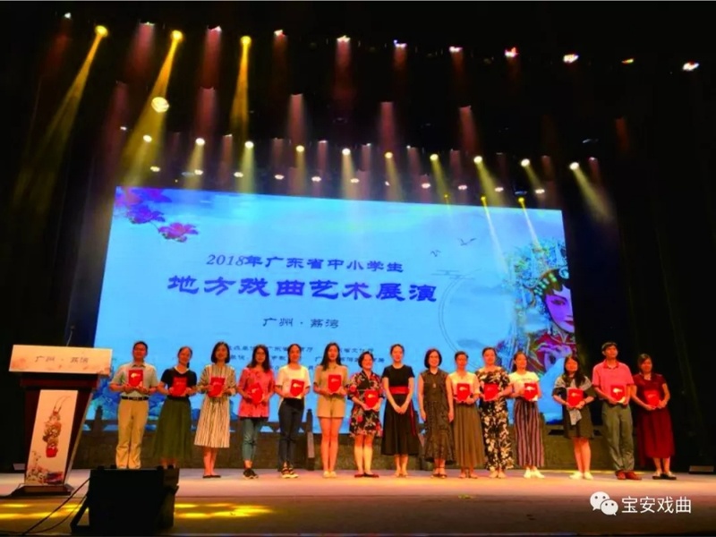 8月26日上午,在宝安区音乐教研员张文杰老师和戏曲兼职教研员倪予老师的组织带领下,福永小学、福新小学、立新湖外国语学校联袂演出的粤剧《武松大闹狮子楼》、下十围小学的粤剧《哑女告状》》两个表演团队及相关专家、辅导老师一行参加了本次展演活动。孩子们不负众望,在众多优秀的团队中以高难度的技术动作和表现力获得了阵阵掌声,展现了宝安戏曲娃的风采与实力,精彩的表演得到了省教育厅领导的高度好评。