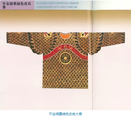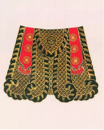 雅墨绣杏黄色大靠是戏曲舞台上扮演武将的战服。杏黄靠是“三国”戏中黄忠和《闹天宫》中二郎神的专用服装。