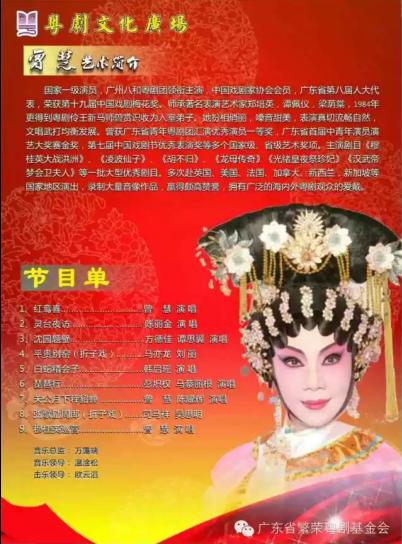 剧目:《泪洒情花》《女驸马》《鸳鸯泪洒莫愁湖》