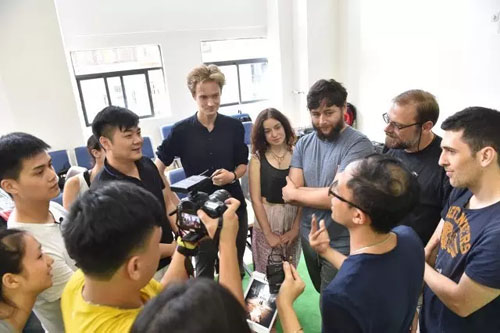 刚刚结束莎翁经典之作《哈姆雷特》广州演出的英国孔雀石剧团导演Ben和主演一行五人,今天下午来到广东粤剧院排练场观看了该院即将上演的由广州文学艺术创作研究院国家二级编剧李新华编撰的新编粤剧《杨翠喜》的排练。在观看排练的过程中,他们对粤剧传统文化甚感兴趣。在排练的间隙,Ben等与广东粤剧院导演徐光华及主演在一起就话剧与粤剧的异同、粤剧的表演特色进行了愉快的交流,Ben表示,中国传统戏曲文化颇具特色,此行收获良多。