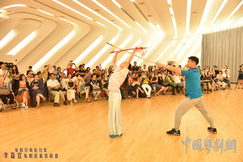 李嘉宜更是精心挑选了小旦、花旦、刀马旦三个行当各自的代表剧目,分别用优美的身段、婉转的唱腔、动情的表演让戏迷零距离地深刻地感受“旦角”的魅力。在演绎《穆桂英招亲》的折子戏中的刀马旦行当时,她与演绎剧中人物杨宗保的广东粤剧院国家二级演员黄春强配合,一唱一和,一招一式都深深地吸引着戏迷,如雷的掌声不断响起。在热烈的掌声中,讲座也进入了尾声,戏迷们意犹未尽,围坐台边久久不肯离去。