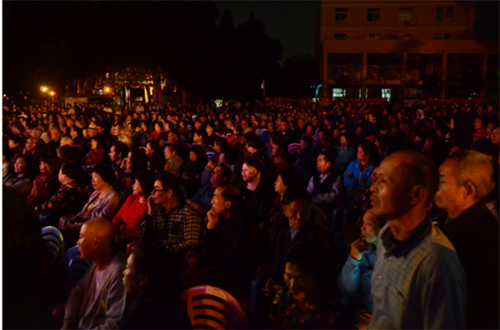 图:在东莞市区东门广场看粤剧演出的群众将广场挤得水泄不通。