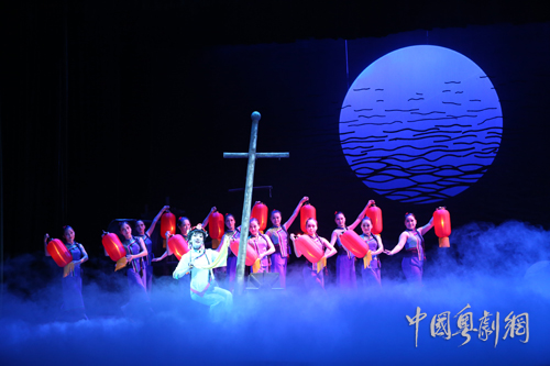 比如,剧中随着水妹反复出现的、几乎简化成“十”字形的桅杆构成,它似乎总是在暗示水妹的命运;台上一簇玉米地,也似乎有生命热情的隐喻;还有弥漫到天际的海水的波纹、无法掌握自己命运的疍家小船……