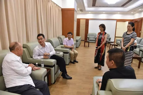 广东省副省长蓝佛安,原广州市市长黎子流,广东省文化厅副厅长杨树,广东粤剧院院长丁凡等演出前会面 广东省副省长蓝佛安,原广州市市长黎子流,广东省文化厅副厅长杨树,原广东省文联党组书记、粤剧《魂牵珠玑巷》编剧陈中秋,广东省文化厅艺术处副处长林之达,广东粤剧院院长丁凡,副院长陈列东、曾小敏等观看演出。