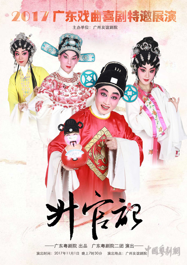 2017年10月31日、11月1日晚,广东粤剧院二团将携大型古装粤剧《刁蛮公主戆驸马》、《升官记》两台大戏参加由广州友谊剧院主办的2017广东戏曲喜剧特邀展演出。