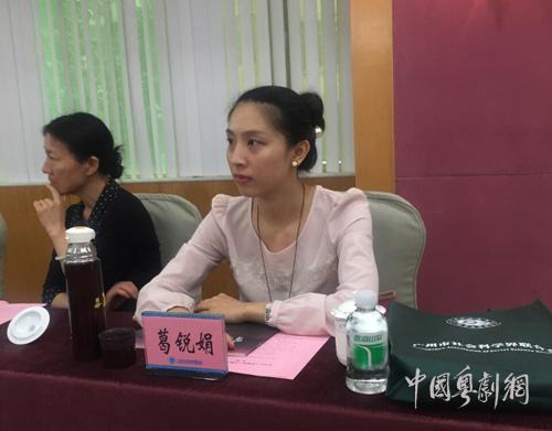 优秀青年花旦葛锐娟作为该纪录片故事人物之一,在座谈会上谈到:“大型纪录片《穿越海上丝绸之路》,追随32个人物的人性故事,跨时空地重绘了海上丝路的人文地图。看到片中一个个鲜活的人物和他们所承载的内涵,再看到自己和粤剧,感触很深。文化、精神从来就是孢子,附着在不同的生命表皮,潜入肌肤血液,融化在基因。承与传,也从来是温情和深刻的,留给今人的,是责任、也是坚守与担当。感谢有这个难得的机会,感谢粤剧院艺术总指导欧凯明老师和我共同完成粤剧部分的拍摄。”