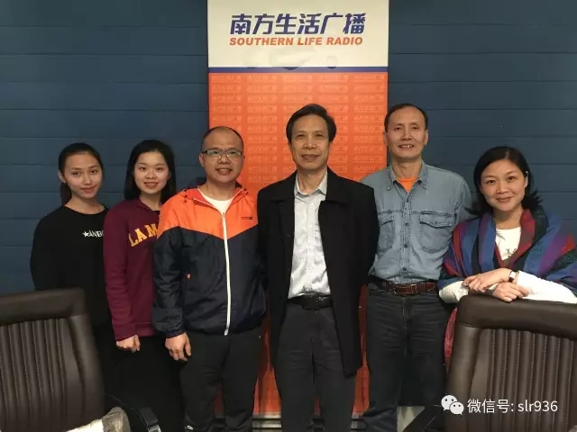 黄文意(左一)和李宗元老师(左四)、苏学成老师(左五)、黄燕老师(左六)做客我台直播室