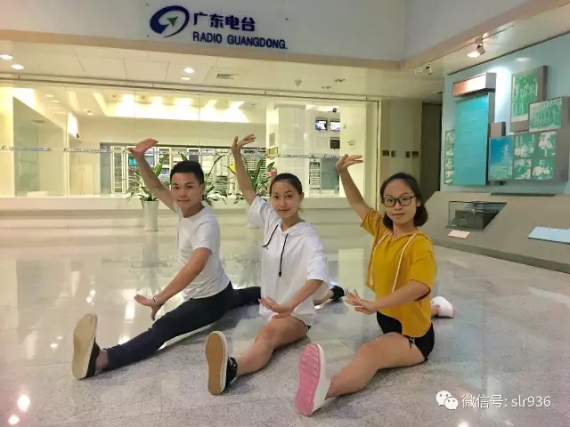 黄文意(中)和同学周恩(左一)、龚秋嫦(左三)做客我台直播室时作基功练习