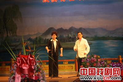 特邀嘉宾陈剑声博士(右)与黄敏仪对唱《打金枝》。