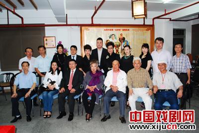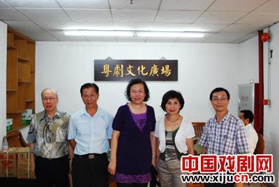省繁荣粤剧基金会秘书长何铁赞(左二)、中央政府驻香港联络办公室宣传文体部处长周佩贞(中)等人亲切留影。(左一为香港新光粤曲艺术促进会副会长林克辉先生,右一为省繁荣粤剧基金会副秘书长郭英伟,右二为香港新光粤。
