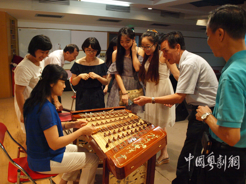 中国音乐学院师生纷纷上前观摩学习,畅谈演奏经验和想法,并就如何展现广东音乐特色进行交流和沟通。现场学习交流氛围浓厚,师生均表示收获颇多。