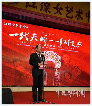 陈建华主任上台讲话,他谈到“拍摄《一代天娇—红线女》是我们认真贯彻落实习近平总书记视察广东时的重要指示。我们要把《一代天娇——红线女》做成艺术精品,通过共同的努力,增强我们的文化自信,把红线女精神发扬光大。”