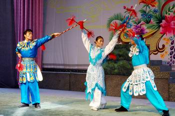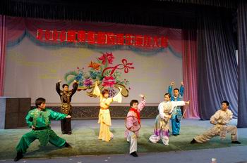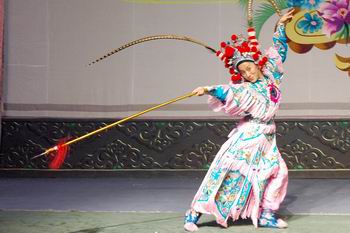下午是由青年团的十个戏参加比赛。他们又一次让大家看到了属于他们的青春气息。十出精彩的折子戏,各具特色。《乾元山》、《血溅李陵碑》、《柴房会》、《夏完淳骂奸》、《逃出金山》、《目莲救母》、《英台哭坟》、《扈家庄》、《挂画》、《林冲—风雪山神庙》这些折子戏集中而突出地体现了生、旦、净、丑的不同行当,唱、念、做、打的基本功。