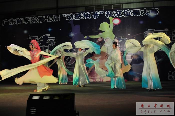当晚学生表演的节目以国际标准交谊舞为主题,代表岭南传统文化精粹的粤剧与现代西方文化在这里交汇。我院著名演员曾小敏在《投江》的表演中掀起了高潮,漂亮的化妆,华丽的服饰,优雅的水袖,高亢的唱腔一次次将台下的学子折服,掌声欢呼声起伏不断,台下的闪光灯闪烁不停。