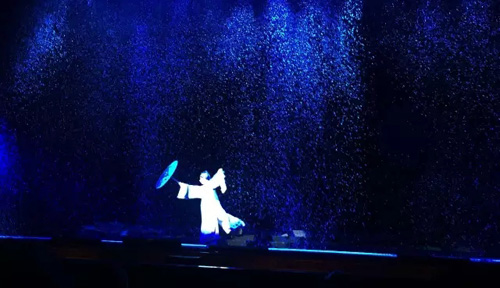 该剧舞台场景设计结合了传统粤剧和西方歌剧的特色,把潺潺流水、绿树红花、亭台楼阁都搬上了舞台。首先应当肯定舞台设计是花了心思的,态度值得称道。而对于丰富的舞台设置,笔者认为应当从两个方面来看:一是视觉感受丰富的舞台,对于初涉戏曲的观众来说,具有一定的吸引力,能吸引他们再次走进剧院,这对传承和发展粤剧有所裨益;另一个方面,道具繁多,占据了大半舞台空间,一则影响了演员的发挥,二则破坏了戏曲的意境。其力求营造的真实感也有点过了,尤其是“冥府情辩”一场,整个舞台观感实在阴森。