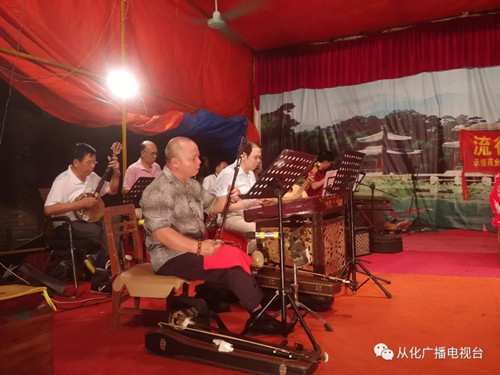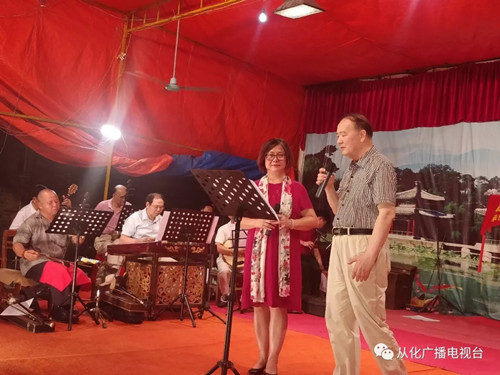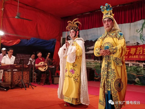 近日,在从化区戏曲协会的组织下,广州市江南戏曲艺术中心师生与陆亨曲艺社艺员在鳌头镇铺锦村同台演出,为村民献上精彩节目。