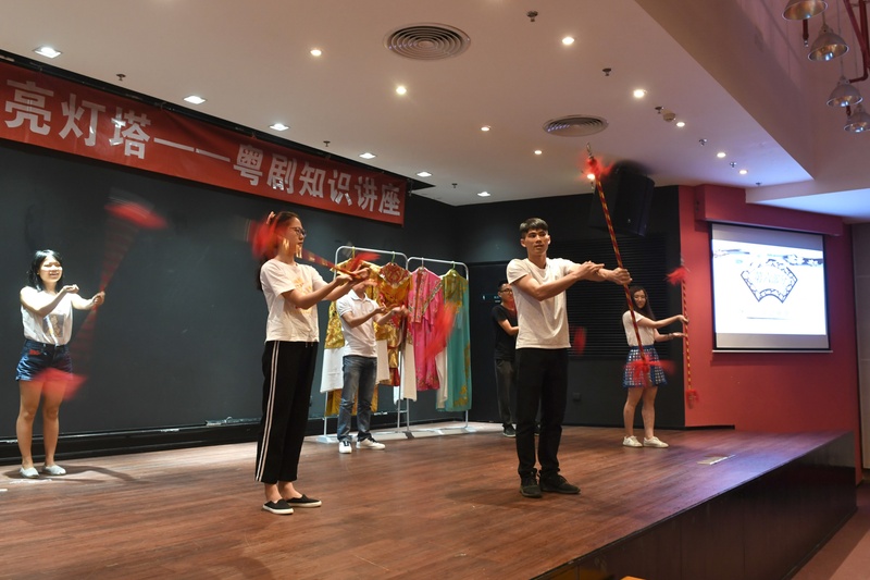 我院国家二级演员,资深培训导师邱小娜为三所高校的师生主讲了以《粤剧知识》为主题的讲座。邱小娜通过轻松生动的表达方式,向师生们讲解了粤剧的起源、行当、面谱等等相关知识。