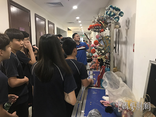 当日下午,华附外国语学校师生在洪林富的带领和讲解下到南方剧院的副台及后台进行参观。师生们先后参观了乐队、道具、服装、化妆等部门,近距离了解粤剧的各项艺术构成。其后,一众师生现场观看了广州粤剧团演出的大型新编粤剧《鸳鸯剑》。该剧由青年花旦、梅花奖得主吴非凡和青年文武生李伟骢领衔主演,精彩的演出令师生们很兴奋,对表演赞不绝口,掌声不断。