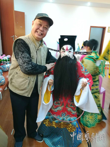 张福伟老师为当晚出现《 陈宫骂曹》的小演员开脸(张福伟老师提供)
