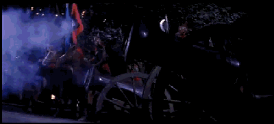 02画面的处理遵循了电影的纪实性,画面中出现了真实的战火、炮、战马,它们被滚滚的烟尘遮挡了一部分,这是在电影的真实性与戏曲的虚拟性之间进行的尝试与平衡,也是本片的一个亮点与精彩之处。