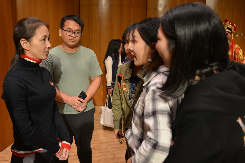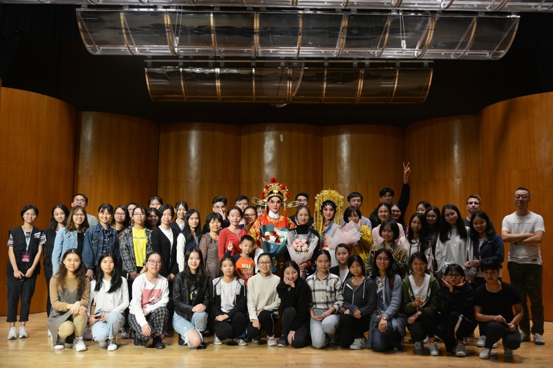 快乐的时光总是过得很快,两个多小时的讲座已落下帷幕,广东外语外贸大学师生迟迟不愿离场,纷纷上台与演员合影,更有不少同学向邱小娜请教粤剧知识。