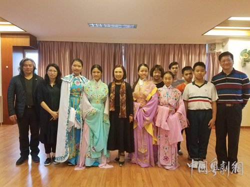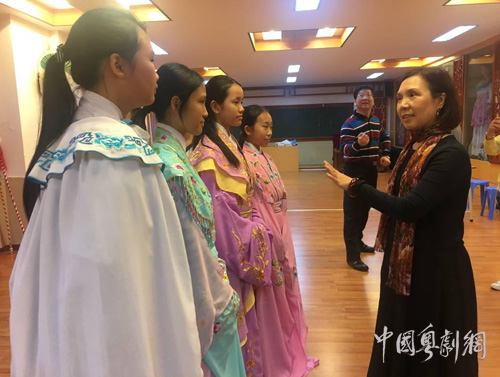 倪惠英老师一行专家、该校粤剧班的专业指导何宇青老师、邹明智老师,在该校龚剑能副校长、粤剧负责老师的陪同下,仔细审查了粤剧班本学期排演的几个精品粤剧折子戏,充分肯定了同学们的表演的同时,提出了许多专业的意见。倪老师更是手把手的亲自教导,举手投足、咬字吐音都一一严格要求,同学们个个都屏吸细聆,认真学习,获益匪浅。