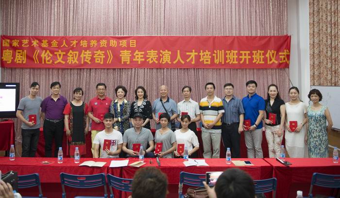 2015年8月6日上午,由国家艺术基金资助、广东粤剧院主办的“粤剧《伦文叙传奇》青年表演人才培训班开班仪式”在广东粤剧院一号会议室举行。广东省文化厅副巡视员王莉,厅艺术处调研员张树,国家艺术基金专家林奋、范莎侠、梁郁南等领导嘉宾与培训班导师、学员近70人参加了开班仪式。