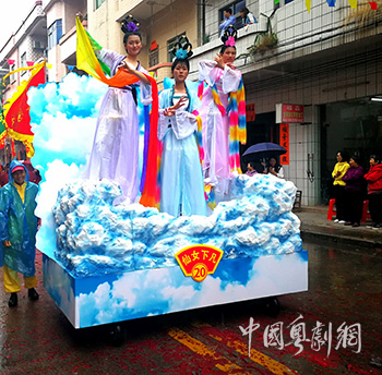 温塘业余粤剧团乐队在花车上演奏粤剧小调