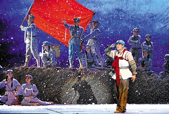 此外,《还金记》将不少现代创新技术与传统粤剧艺术相结合,增加了不少时尚元素,视觉效果很好看。为了表现阿金在长征途中奔跑,剧组甚至将跑步机搬上了粤剧舞台。跑步机隐藏在一座石头下方,观众看不到机器本身,但能看出演员在不断奔跑,形象非常生动,视觉效果很棒。王佳纳说,采用这些现代的表现形式是为了增强舞台表现力,也希望让现代观众爱上传统粤剧。梁郁南也说:“我在构思剧本时,就有意识地为舞美、灯光和音乐留出发挥的空间。现代粤剧要有现代意识,要突破戏曲程式化和脸谱化,让程式服务于内容,让人物更丰富立体。”