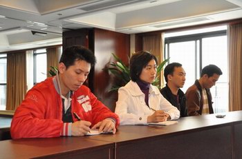 (新版《花蕊夫人》的主演在认真听取老师们的建议。)
