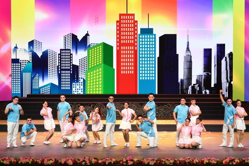主题晚会特色鲜明,丰富多彩,以篇章式结构,通过舞台表演、视频展示和主持串场等形式,展现了我院六十年来各个阶段的艺术成就。