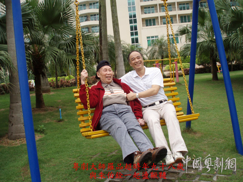 保持童心亦是鉴叔养生长寿秘诀。我的从艺五十年专场要和鉴叔合唱《五郎救弟》,演出之前,为了有一个安静而轻松的环境度曲,我约鉴叔到从化温泉休息。他老人家很高兴,沿途上谈笑风生,车一进入从化便勾起了他老人家对往事的回忆,他说很久未来从化了,当年国家经济困难,食物短缺,省粤剧院院长黄宁婴组织名演员到从化温泉休息和业务交流,让大家在那里吃喝玩乐像神仙那样快活,所以称为从化“神仙会”,今天老神仙故地重游,带着这小神仙又来神仙一番。
