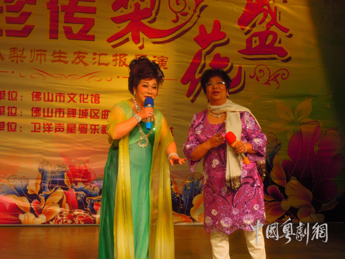 沈小梨(右)与陈玲芳(左)演唱佛山原创曲目《通济桥畔春色妍》。