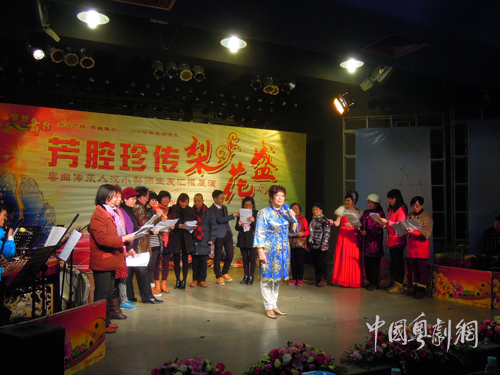 沈小梨带领她执教的佛山私伙局表演培训班平喉班学员,同声齐唱《张文贵践约临安》。