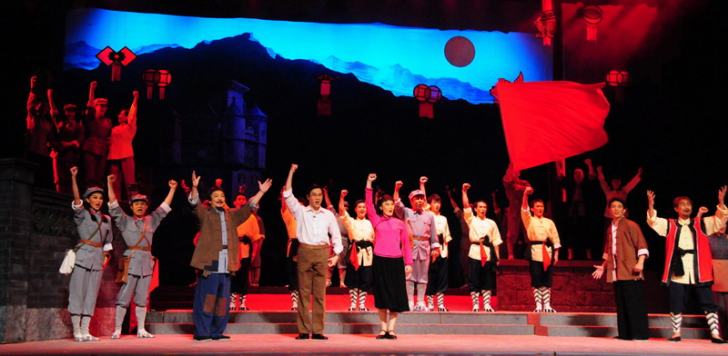 集结广东粤剧界七大院团精英阵容的红色经典粤剧《山乡风云》昨日亮相东方艺术中心。四十三年前曾在上海主演《山乡风云》、享有“粤剧皇后”盛誉的83岁著名粤剧表演艺术家红线女亲自登台演唱了一段“书房斗智之秋夜抒怀”。