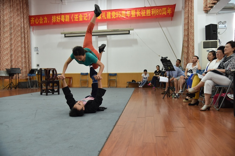 今天上午,我院新创作现代粤剧《还金记》全剧连排。广东省文化厅艺术处处长于万东、副处长林之达,广东粤剧院院长丁凡,副院长陈列东、陈奔及该剧全体主创人员出席观看了连排。随后,于处长与剧组主创人员,就排练情况展开讨论。于处长表示对该剧目表示肯定并充满信心:“今年是纪念建党95周年暨长征胜利80周年,这个主旋律的作品非常鲜明。剧中的人物十分有个性,剧情很流畅,情节进展比较快。这个剧目主题切合我国的主旋律,也有很高的市场价值。从去年到今年,粤剧院做了大量的工作,进度抓得很紧,到了现阶段能做出这个效果非常不容易,也是一个新的突破,全体主创、演职人员花了大量的心血,希望大家群策群力,把这个戏搞得越来越好,期待首演大家能看到一场充满正能量的戏。”