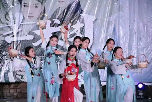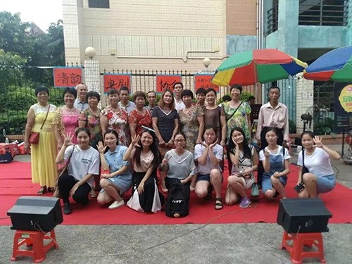 2017年6月28日,民间艺术团桥脚曲艺队进校在一饭三门口为我校学生献上演出。