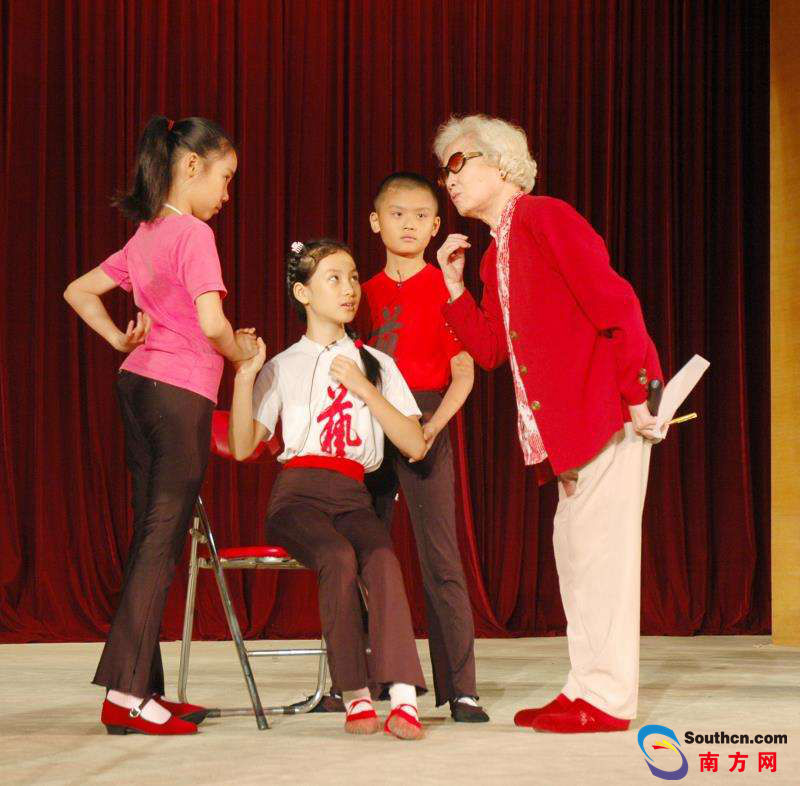 2008年著名粤剧表演艺术大师红线女亲临基地指导学生排练粤剧折子戏《山乡风云》