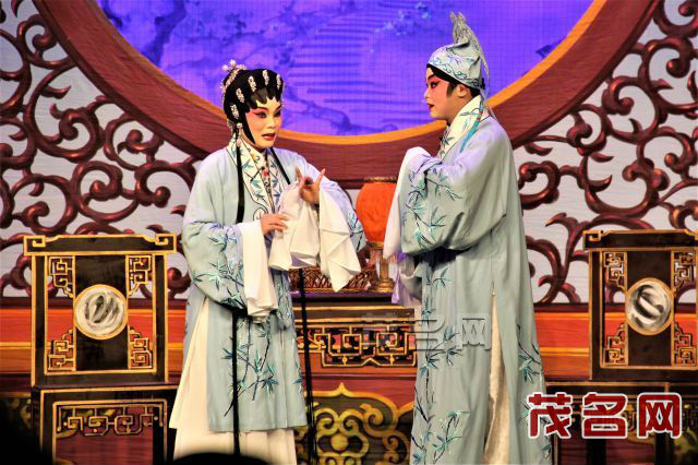 5月12日晚上演的《顺母桥》,则由高州市粤剧团团长、人称“粤西何非凡”的青年文武生陈斌及该团著名粤剧花旦苏丹敏等人领衔主演,茂名市戏剧家协会副主席、高州粤剧团团长陈斌作为该团担纲文武生,以唱何非凡的“凡腔”见长,洗练混厚,苍劲古朴。而苏丹敏饰演剧中角色梅洁清,她演绎细腻纤巧,演技达至炉火纯青的程度,充分体现了高州粤剧团粤剧表演艺术的鲜明特点。在场观众被演员们精美的扮相、优美的唱腔、生动的演绎以及该剧曲折的故事情节深深吸引,不时爆发出阵阵掌声。