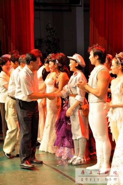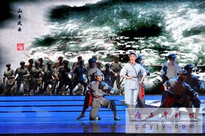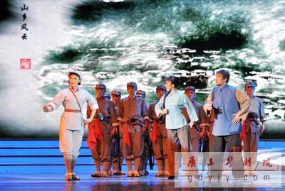 昨晚(9月23日),由中共广东省委宣传部、广东省文化厅、广东省文学艺术界联合会主办的“祖国步步高——广东省文艺界庆祝中华人民共和国成立60周年文艺晚会”于省委礼堂成功上演,为观众献上一顿艺术盛宴。此次晚会节目从时间的角度上述说了新中国的成立、发展与腾飞,我院红色经典剧目《山乡风云》为这台晚会拉开序幕,也将观众的情绪推向第一个高潮。